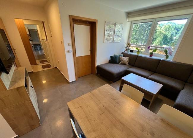 Byt je ideálny na rekreáciu, investíciu na prenájom alebo ako komfortné celoročné bývanie. Tiché miesto pod lesom zároveň ponúka rýchlu dostupnosť do centra obce s reštauráciami, obchodmi a lyžiarskymi školami.