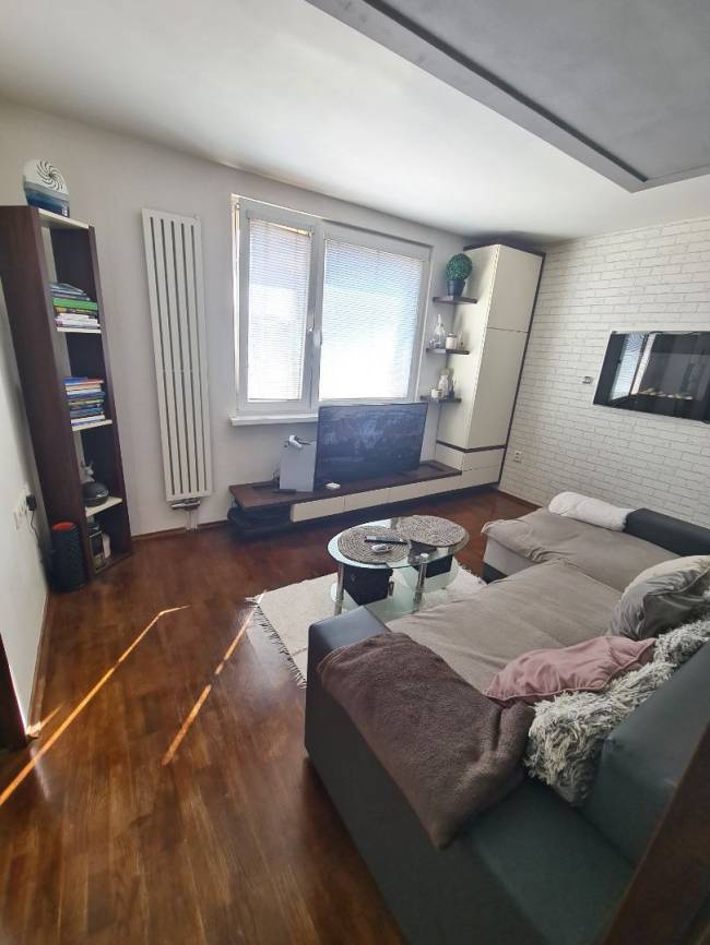 Nehnuteľnosť je po kompletnej, vkusnej rekonštrukcii: plastové okná so žalúziami a sieťkami proti hmyzu, drevené masívne podlahy jednotné v celom byte, stierky biele aj stropy, nové interiérové drevené posuvné dvere do kuchyne, obývačky a do kúpeľne, vstavaná skriňa na mieru v chodbe, kuchynská linka je biela do tvaru L so zabudovanými spotrebičmi - umývačka riadu Siemens, indukčná varná doska Siemens, el. rúra Siemens, digestor, granitový drez, samostatná chladnička s mrazničkou, mikrovlnka, kuchynský stôl s taburetkou. Kúpeľňa je murovaná. zrekonštruovaná, so sprchovým kútom, WC Geberit, práčka ostáva. Obývačka (denná miestnosť) je oddelená od nočnej časti. Nové sú aj rozvody elektriky, vody, odpadov. Stúpacie rozvody v bytovom dome boli menené za nové.